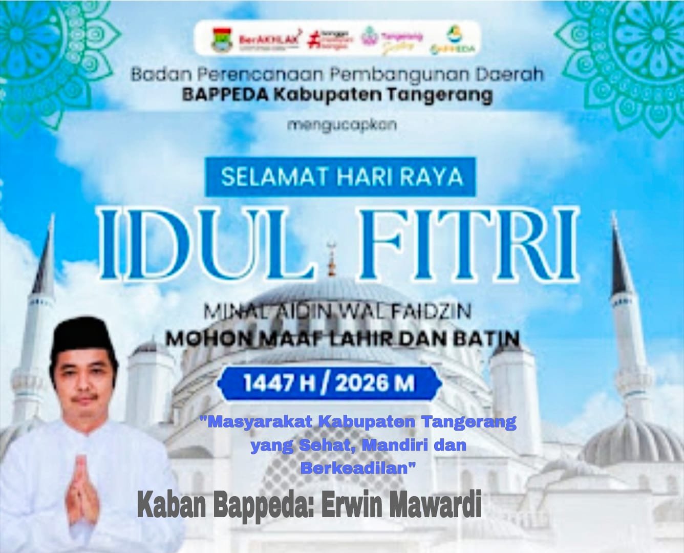 Share Facebook Twitter LinkedIn Pinterest Email TANGERANG, natademokrasi.com – Kepala Badan Pendapatan Daerah (BAPPEDA) Kabupaten Tangerang Mengucapkan Selamat Idul Fitri 1447 H/2026 M. “Masyarakat Tangerang yang Sehat, Mandiri dan Berkeadilan” Kaban BAPENDA: ERWIN MAWARDI